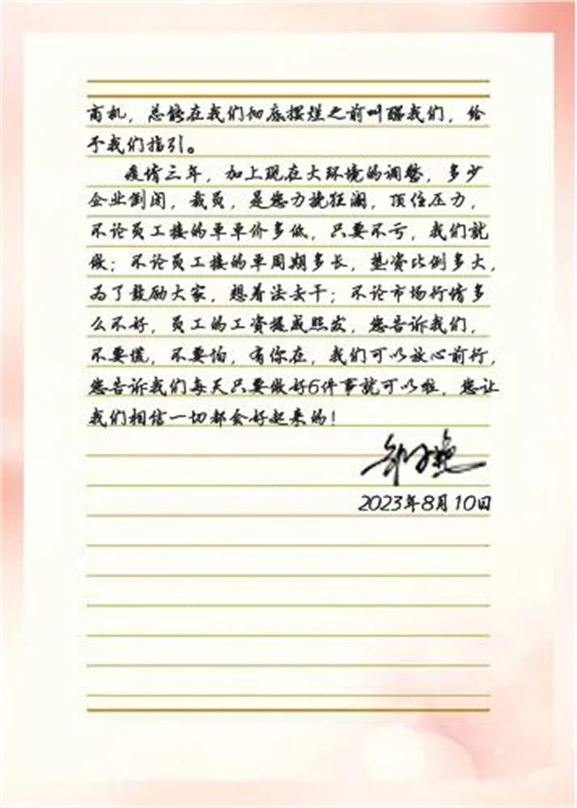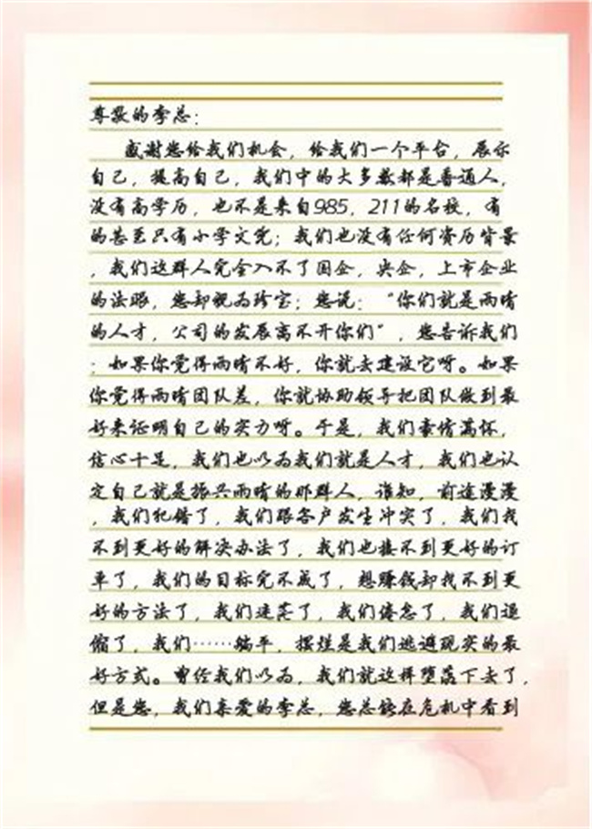 雨晴公司董事長秉承“員工服務(wù)客戶,老板成就員工”,讓員工在雨晴實現(xiàn)“三年買車,五年買房”的夢想。董事長李明臣說,每個人每天應(yīng)該活在目標中,對未來有期待,對自己有要求!做任何事情一定要有目標,心中有底氣,有方法,有責任,有擔當,才會有更好的方法去執(zhí)行!