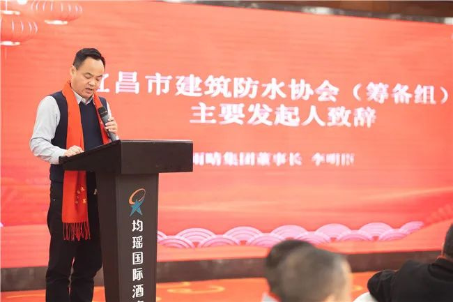(宜昌市建筑防水協(xié)會(huì)(籌備組)發(fā)起單位湖北雨晴防水集團(tuán)董事長(zhǎng)李明臣致辭)