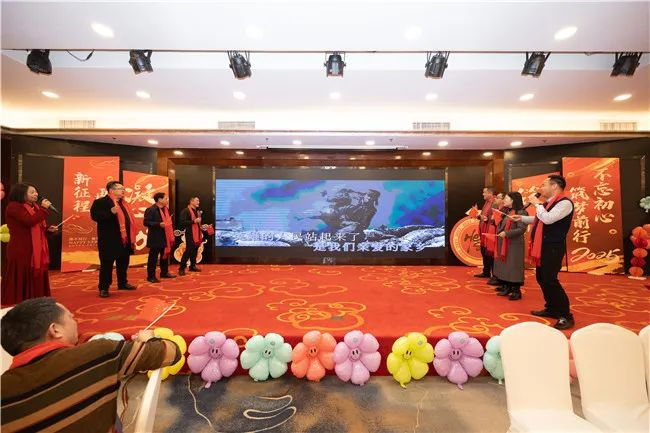 隨著主持人的閃亮登場(chǎng),聯(lián)歡晚會(huì)正式拉開(kāi)帷幕。協(xié)會(huì)籌備組秘書(shū)長(zhǎng)艾雪芹上臺(tái)發(fā)表了熱情洋溢的開(kāi)場(chǎng)致辭。她首先對(duì)所有會(huì)員單位的到來(lái)表示了熱烈歡迎和衷心感謝,回顧了過(guò)去一年里,宜昌市建筑防水行業(yè)在大家的共同努力下所取得的顯著成就。同時(shí),也對(duì)未來(lái)行業(yè)的發(fā)展方向進(jìn)行了展望,鼓勵(lì)各會(huì)員單位在新的一年里繼續(xù)加強(qiáng)合作。宜昌市建筑防水協(xié)會(huì)發(fā)起單位——湖北雨晴防水集團(tuán)董事長(zhǎng)李明臣發(fā)表了重要講話,對(duì)到場(chǎng)的嘉賓表示誠(chéng)摯的感謝,并為協(xié)會(huì)籌備與未來(lái)運(yùn)作勾勒了清晰藍(lán)圖,期待所有會(huì)員單位未來(lái)攜手共進(jìn),共同推動(dòng)宜昌市建筑防水行業(yè)邁向更高的臺(tái)階,為城市建設(shè)貢獻(xiàn)更多的力量。領(lǐng)導(dǎo)們的話語(yǔ)堅(jiān)定有力,贏得了臺(tái)下陣陣掌聲,讓大家對(duì)未來(lái)充滿了信心和期待。稍后,宜昌市建筑防水協(xié)會(huì)主要發(fā)起人(李明臣)和協(xié)會(huì)籌備組擬任領(lǐng)導(dǎo)班組(艾雪芹、徐習(xí)海、石清華、秦武松、喬玲玲、周震東)共同上臺(tái)合唱《歌唱祖國(guó)》,那鏗鏘有力的歌聲,唱出了對(duì)偉大祖國(guó)的深深熱愛(ài),也唱出了我們建筑防水人對(duì)行業(yè)未來(lái)的堅(jiān)定信心。就如同這激昂的旋律,我們各會(huì)員單位緊密相連,如拼圖般不可或缺,共同構(gòu)筑起行業(yè)溫暖的大家庭。這份深厚情誼與強(qiáng)大凝聚力,恰似一座燈塔,照亮我們?cè)诮ㄖ浪I(lǐng)域破浪前行的征程。